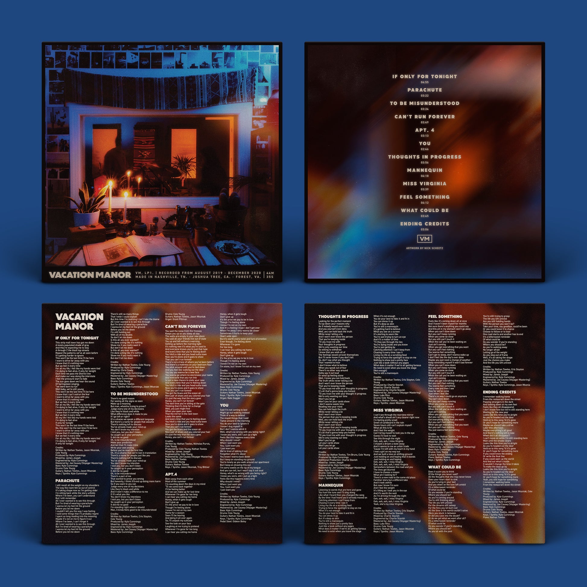 Vacation Manor's self-titled debut album on vinyl, with double sided lyric insert.